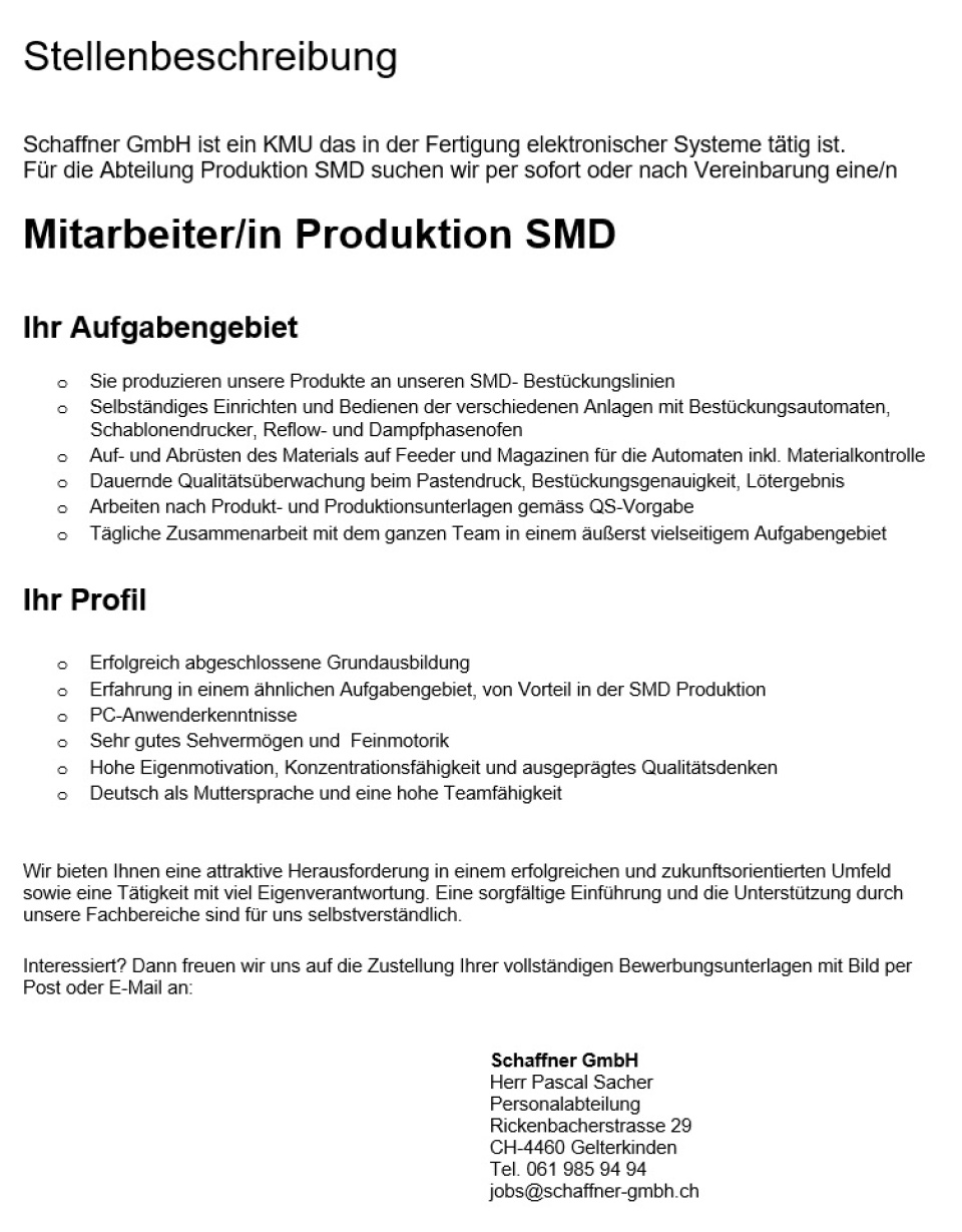 Mitarbeiter/in Produktion SMD